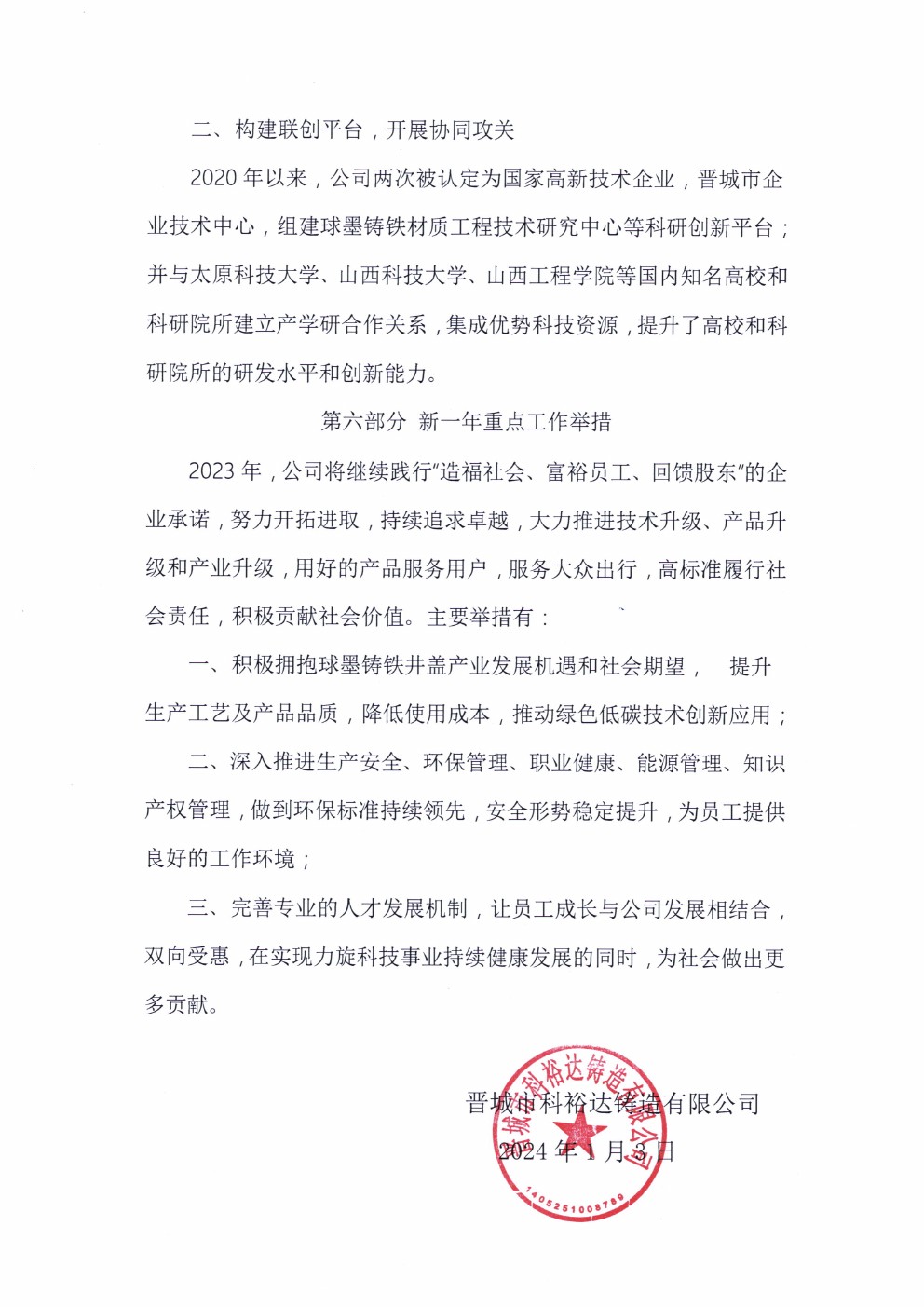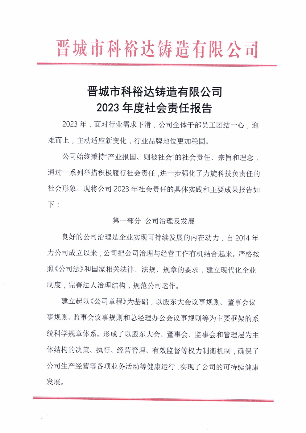 晉城市科裕達鑄造有限公司2023年度社會責(zé)任報告