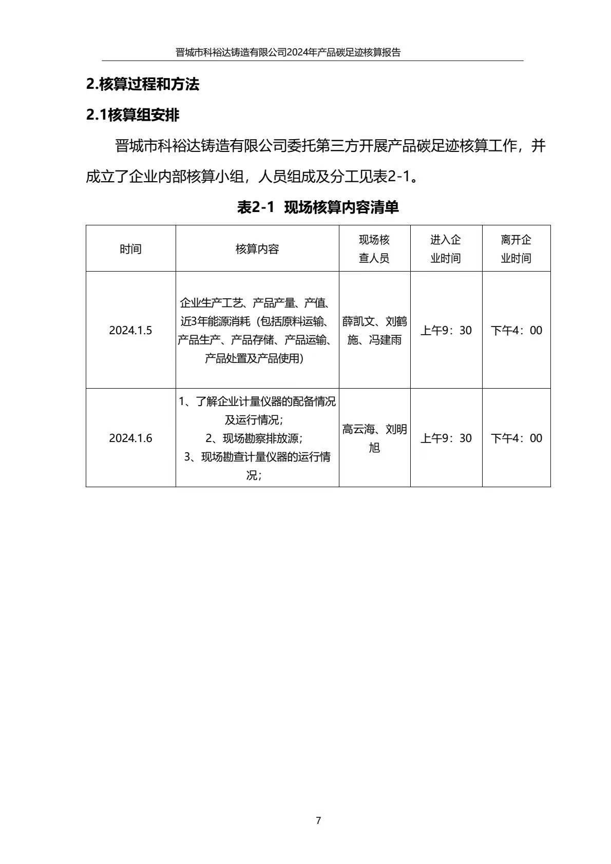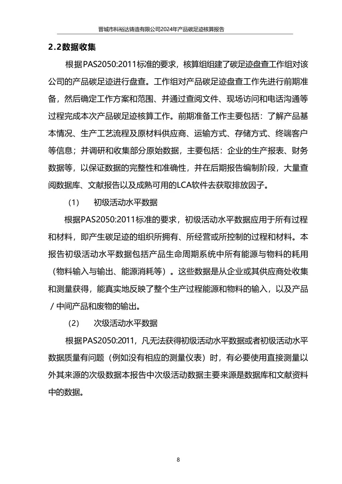 晉城市科裕達鑄造有限公司碳足跡報告